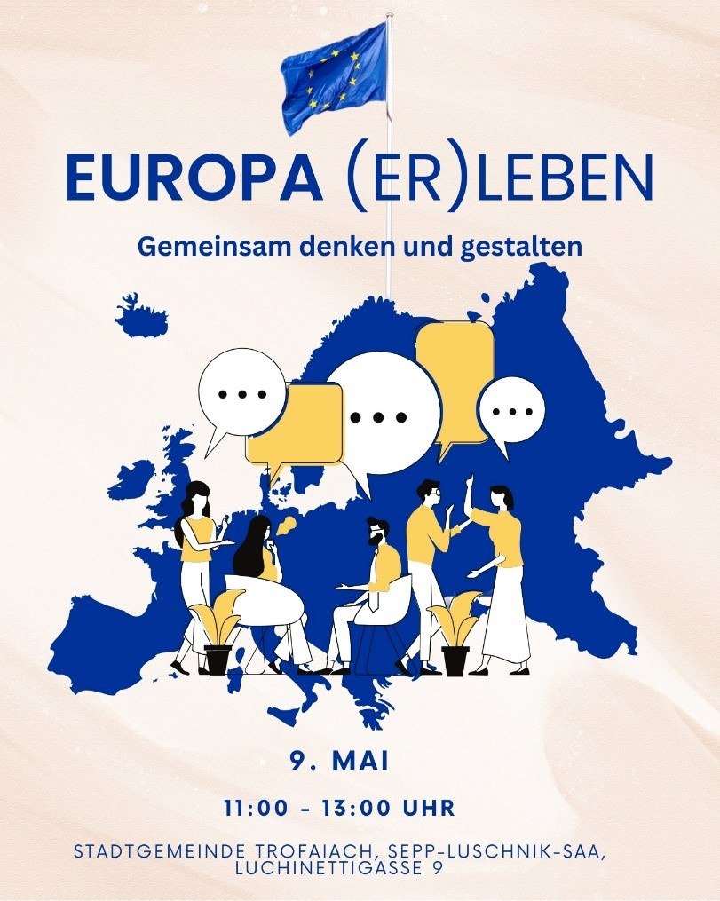 Feiern Sie mit uns den Europatag 2025. Im Jahr 1995 ist Österreich der Europäischen Union beigetreten. Dies nehmen wir zum Anlass, den Europatag unter dieses Motto zu stellen. Interessierte sind eingeladen vorbeizukommen und auch die 30-jährige EU-Mitgliedschaft Österreichs zu feiern. Beim Glücksrad kann das eigene Wissen über die Europäische Union unter Beweis gestellt werden.