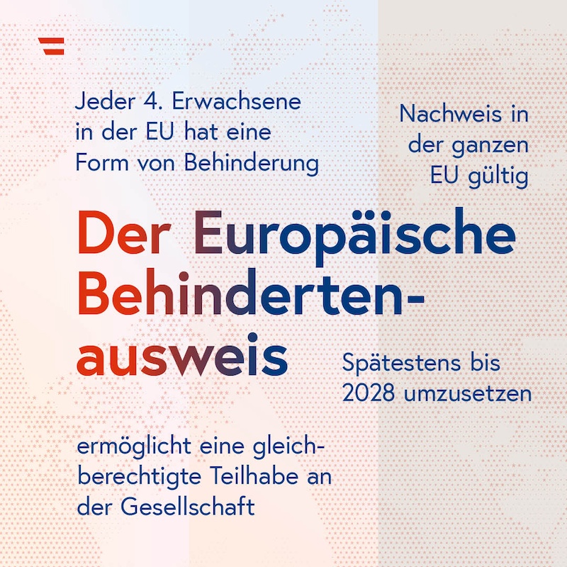 Mehr persönliche Flexibilität, Mobilität und Lebensqualität durch den Europäischen Behindertenausweis ("European Disability Card"): Nach Schätzungen des Statistischen Amts der EU ("Eurostat") ist jeder 4. Erwachsene in der EU mit einer Form von Behinderung konfrontiert. Die EU und ihre Mitgliedstaaten wollen dafür sorgen, dass all diese Menschen ihre Rechte wahrnehmen, möglichst uneingeschränkt und barrierefrei an der Gesellschaft teilhaben sowie diskriminierungsfrei leben können. Vor allem auf Reisen stoßen sie jedoch häufig auf strukturelle Hindernisse und systemische Ungleichheiten, die ihre uneingeschränkte Teilhabe an der Gesellschaft verhindern oder einschränken. Der Europäische Behindertenausweis soll in der gesamten EU als Nachweis des Behindertenstatus dienen und den gleichberechtigten Zugang zu Sonderbedingungen oder Vorzugsbehandlungen – wie ermäßigten Tarifen oder freiem Eintritt, vorrangigem Zugang, Assistenzkräften und reservierten Parkplätzen – gewährleisten. Das soll vor allem für Kultur- und Freizeitveranstaltungen, aber auch Sport- und Strandeinrichtungen sowie Verkehrsdienstleistungen gelten. Darauf haben sich der Rat der EU und das Europäische Parlament im Februar 2024 geeinigt. Nach dem formalen Beschluss haben die Mitgliedsstaaten 3,5 Jahre Zeit zur Umsetzung. Im Jahr 2028 sollte dieser einheitliche Ausweis für rund 100 Millionen Menschen in Europa Realität sein.