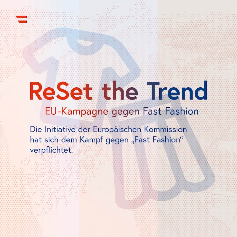 "Make fast fashion out of fashion". Jedes Jahr werden 5,8 Millionen Tonnen Kleidung produziert, getragen und weggeworfen. Das entspricht 11,3 Kilogramm Kleidungsabfall pro Person. Der Textilverbrauch stellt eine der drei größten Belastungen für Wasser und Bodennutzung dar. Dem Kampf gegen "Fast Fashion" hat sich die Initiative "ReSet the Trend" der Europäischen Kommission verpflichtet. Sie soll zu einem nachhaltigeren Umgang mit Kleidung animieren und das gesellschaftliche Bewusstsein für die ökologischen, sozialen, wirtschaftlichen und gesundheitlichen Vorteile einer Umgestaltung des Textilsektors schärfen. Aktuell bereitet die EU-Kommission dazu auch eine Verordnung zur Kennzeichnung von Textilien vor.