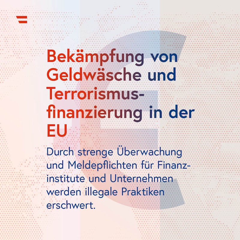 Gemeinsam gegen Finanzkriminalität. Die EU hat bereits vor über 30 Jahren strenge Vorschriften zur Bekämpfung von Geldwäsche und Terrorismusfinanzierung erlassen. Diese Regulierungen zielen darauf ab, Finanzströme transparenter zu machen und kriminelle Aktivitäten konsequenter zu bekämpfen. Durch strengere Überwachung und Meldepflichten für Finanzinstitute und Unternehmen werden illegale Praktiken erschwert. Aufgrund technologischer Innovationen – Stichwort Krypto-Währungen – und des globalen Charakters terroristischer Organisationen werden die Vorschriften immer wieder an neue Herausforderungen angepasst. Ziel ist es auch, Lücken oder "Schlupflöcher" im System zu schließen.