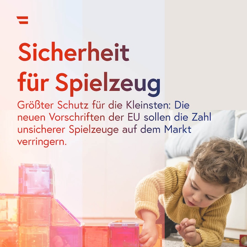 Größter Schutz für die Kleinsten. Das sollen neue Regelungen im Bereich der Produktsicherheit von Kinderspielzeug bewirken. Dadurch sollen sich die Zahl von unsicherem Spielzeug auf dem Unionsmarkt verringern und Kinder besser vor spielzeugbezogenen Risiken geschützt werden. Bevor ein Spielzeug auf den Markt gebracht wird, müssen die Hersteller eine umfangreiche Sicherheitsbewertung durchführen.