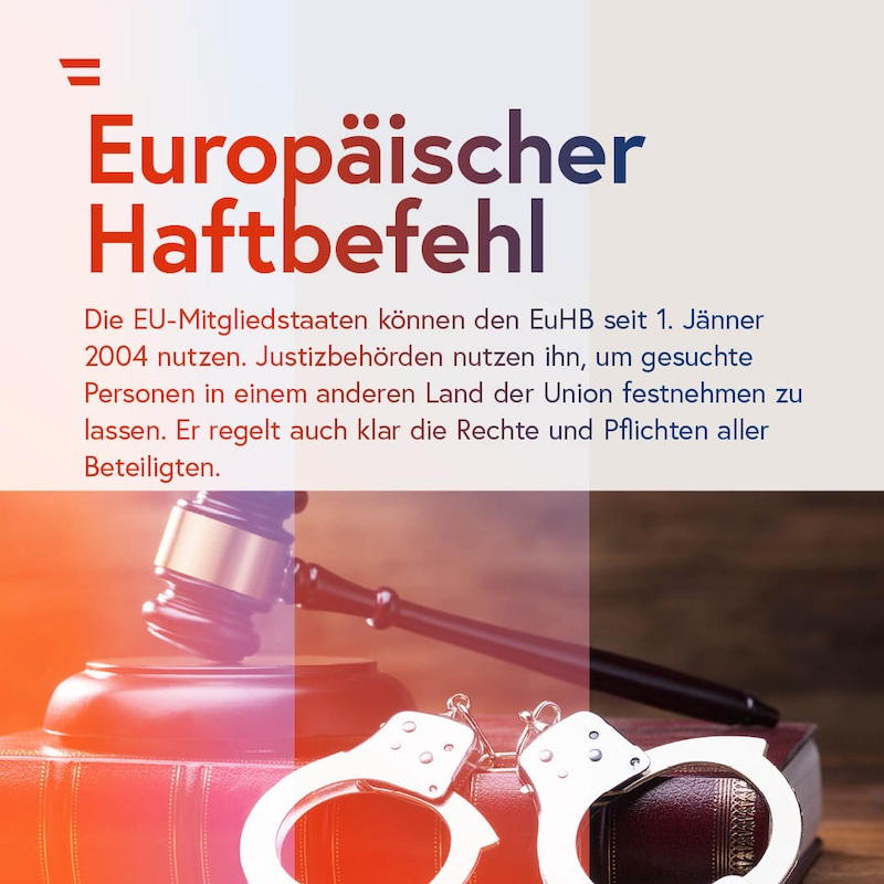 Strafverfolgung über Österreichs Grenzen hinweg? Ja sicher! Seit über 21 Jahren gibt es in der EU den Europäischen Haftbefehl (EuHB oder EuHb). Die Justizbehörden der EU-Mitgliedsstaaten nutzen ihn, um gesuchte Personen in einem anderen Land der Europäischen Union festnehmen zu lassen und um die Übergabe zwecks Strafverfolgung, Vollstreckung einer Freiheitsstrafe oder einer freiheitsentziehenden Maßnahme zu ersuchen. Der Europäische Haftbefehl regelt auch klar die Rechte und Pflichten, sowohl der Behörden, als auch der gesuchten Personen. So muss ein Land, das eine per EuHB gesuchte Person festgenommen hat, innerhalb von 60 Tagen entscheiden, ob der Haftbefehl vollstreckt wird. Die Festgenommenen müssen schriftlich in einer für sie verständlichen Sprache über ihre Rechte informiert werden. Diese beinhalten zum Beispiel das Recht, im Fall der Verhängung der Übergabehaft durch eine Verteidigerin oder einen Verteidiger vertreten zu werden. Mit der Einführung des Europäischen Haftbefehls hat sich sowohl die Dauer der Verfahren, als auch die Dauer der Haft deutlich verkürzt.