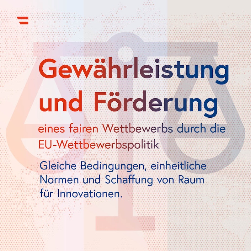 Die Wettbewerbsvorschriften der EU sind so konzipiert, dass sie faire und gleiche Bedingungen für Unternehmen gewährleisten und gleichzeitig ausreichend Raum für Innovation, einheitliche Normen und die Entwicklung kleiner und mittlerer Unternehmen (KMU) ermöglichen. Die Europäische Kommission kontrolliert und untersucht wettbewerbsfeindliche Praktiken, Fusionen und staatliche Beihilfen, um faire Wettbewerbsbedingungen für europäische Unternehmen und eine angemessene Auswahl sowie faire Preise für europäische Verbraucherinnen und Verbraucher zu garantieren. Die EU engagiert sich auch international für die Förderung und Verbreitung bewährter Verfahren (Best Practices) im Wettbewerbsbereich. Sie ist Gründungsmitglied des Internationalen Wettbewerbsnetzes ("International Competition Network", kurz ICN) und untersucht gemeinsam mit internationalen und nationalen Stellen mutmaßliche Wettbewerbsverstöße.