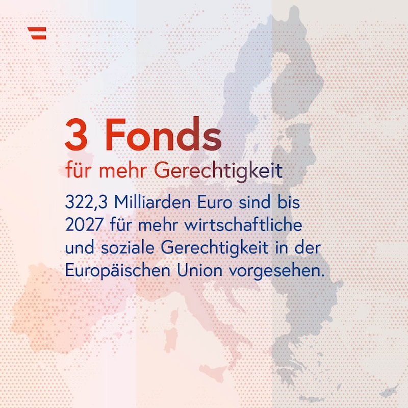 Der kleinste dieser 3 Fonds ist mit 42,6 Milliarden Euro der Kohäsionsfonds. Er dient der Förderung einer nachhaltigen Entwicklung zur Stärkung des wirtschaftlichen, sozialen und territorialen Zusammenhalts der Europäischen Union. Er ist für jene Staaten gedacht, deren Bruttonationaleinkommen (BNE) pro Kopf bei unter 90 Prozent des EU-Durchschnitts liegt – Österreich fällt nicht darunter. Im Programmplanungszeitraum 2021-2027 stehen Fördermittel für folgende Bereiche zur Verfügung: Investitionen im Umweltbereich, zum Beispiel im Zusammenhang mit nachhaltiger Entwicklung und Energie, die einen Nutzen für die Umwelt aufweisen; transeuropäische Netze im Bereich der Verkehrsinfrastruktur (TEN-V) und technische Hilfe.