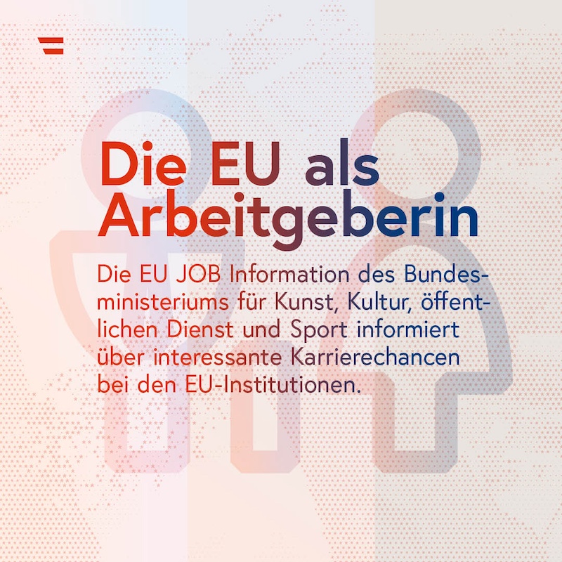 Gut 60.000 Menschen aus den 27 EU-Mitgliedstaaten arbeiten bei den EU-Institutionen. Klingt zwar viel, ist es aber nicht, zählt doch allein die Stadt Wien rund 67.000 Beschäftigte. Jedenfalls bieten die Institutionen und Agenturen der EU interessante Karrierechancen. Welche die sind, darüber informiert die "EU JOB Information" des Bundesministeriums für Kunst, Kultur, öffentlichen Dienst und Sport (BMKÖS). Sie betreut auch Bewerberinnen und Bewerber während der umfangreichen Auswahlverfahren. Die "EU JOB Information" arbeitet dabei eng mit der Ständigen Vertretung Österreichs bei der Europäischen Union zusammen. Der laufende Kontakt mit dem Europäischen Amt für Personalauswahl (EPSO), das die Auswahlverfahren für die EU-Institutionen durchführt, stellt Informationen aus erster Hand sicher. Übrigens: Die "EU JOB Information" ist auch auf der Online-Plattform LinkedIn vertreten!