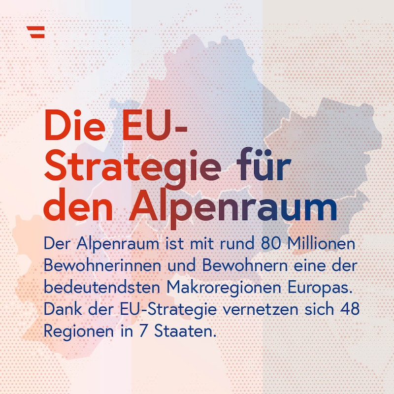 Österreich hat gemeinsam mit Liechtenstein 2025 den Vorsitz in der EU-Alpenraumstrategie inne; der Titel des gemeinsamen Programms lautet: "Zusammenarbeit stärkt Wandel". Die EU-Strategie für den Alpenraum ("EU Strategy for the Alpine Region", kurz EUSALP) umfasst 7 Alpenländer (5 EU-Mitgliedstaaten: Österreich, Frankreich, Deutschland, Slowenien und Italien; 2 Nicht-EU-Mitgliedstaaten: Schweiz und Liechtenstein) beziehungsweise 48 Regionen in diesen Ländern.