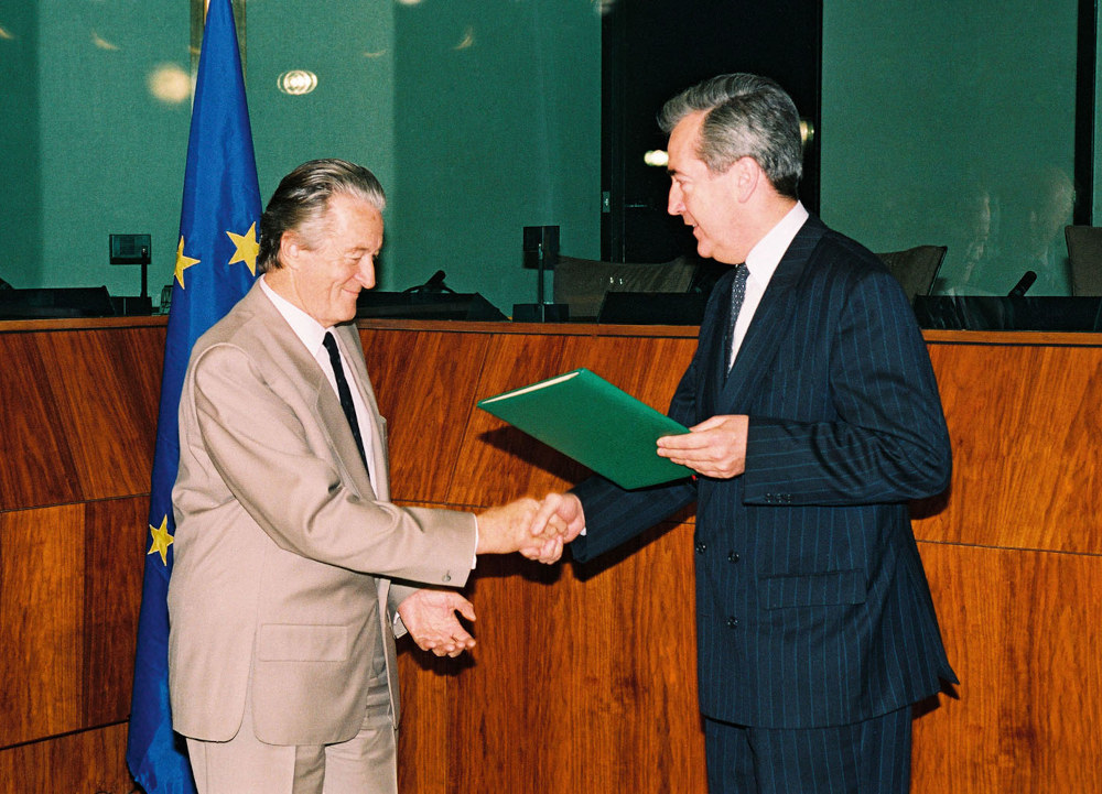 Alois Mock (ÖVP) gilt als einer der "Väter" des EU-Beitritts Österreichs. Er überreichte in seiner Funktion als Außenminister am 17. Juli 1989 Österreichs Beitrittsgesuch ("Brief nach Brüssel") an den damaligen französischen Außenminister Roland Dumas (zu diesem Zeitpunkt Vorsitzender des EG-Ministerrates). Bekannt ist auch das Bild, das Alois Mock gemeinsam mit seinem ungarischen Amtskollegen Gyula Horn bei der Durchschneidung eines Stücks des "Eisernen Vorhangs" an der Grenze zwischen Österreich und Ungarn am 27. Juni 1989 zeigt – wenige Monate später, am 9. November 1989, fiel die Berliner Mauer. Als Außenminister führte er die Beitrittsverhandlungen Österreichs mit der EU und setzte sich mit unermüdlichem Engagement für das überwältigende Votum der Österreicherinnen und Österreicher bei der Volksabstimmung am 12. Juni 1994 ein. Dafür erhielt der ausgebildete Diplomat auch den Beinamen "Mister Europe".