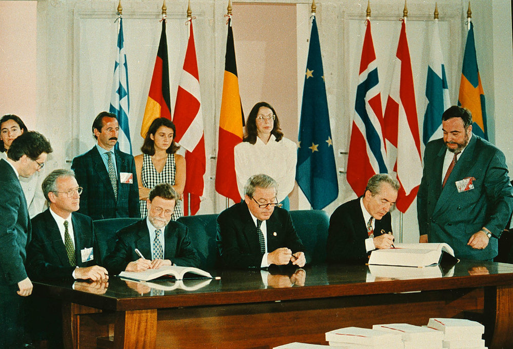 Beim Europäischen Rat auf der griechischen Insel Korfu am 24./25. Juni 1994 wurden die Beitrittsverträge von Österreich, Schweden und Finnland unterzeichnet – sowohl von den damaligen 12 Mitgliedstaaten als auch von den 3 neu beitretenden Staaten.