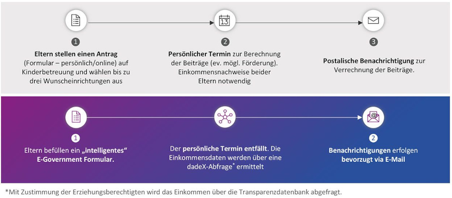 - Eltern befüllen ein „intelligentes“ E-Government Fomular.