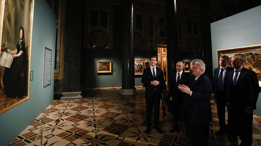Bundeskanzler Sebastian Kurz eröffnete mit dem russischen Präsidenten Wladimir Putin die Ausstellung "Kaiserliche Metropolen: St. Petersburg – Wien" in St. Petersburg. Daneben standen bilaterale und Energiefragen im Zentrum des Gespräches.