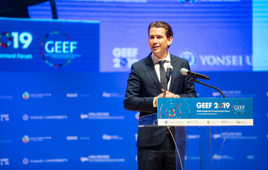 Bereits zu Beginn seines Aufenthalts in Südkorea nahm Bundeskanzler Sebastian Kurz am Global Engagement and Empowerment Forum zu den UNO-Nachhaltigkeitszielen an der Yonsei-Universität in Seoul teil. "Die 'Sustainable Development Goals' der Vereinten Nationen ermöglichen als eine Art Kompass einen ganzheitlichen Blick auf Ziele wie Frieden, Gerechtigkeit und Wohlstand. Das ist gerade in einer Zeit mit rasanten Veränderungen, in der der technologische Fortschritt immer rascher voranschreitet, von zentraler Bedeutung", erläuterte der Bundeskanzler bei seiner Ansprache.