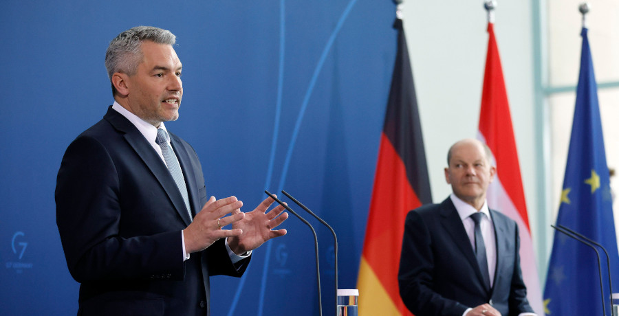 Die Inflation sei "derzeit hoch", hielt Kanzler Nehammer des Weiteren fest. Die österreichische Bundesregierung setze Maßnahmen, um etwa die hohen Energiepreise abzufedern. Österreich sei wie Deutschland betroffen und wolle mittel- bis langfristig die Abhängigkeit von russischem Gas reduzieren. Bei ihrem gemeinsamen Gespräch sei man übereingekommen, dass die beiden Länder "eng abgestimmt" vorgehen werden: "Gleiche Interessenslagen, gleiche Herausforderungen", so Nehammer.