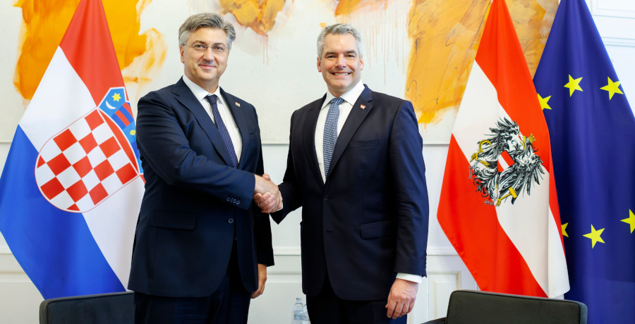 Aber auch in anderen Bereichen könne man auf eine gute Partnerschaft zurückblicken: "Österreich und Kroatien sind auch schon seit vielen Jahren Verbündete im Kampf gegen die irreguläre Migration. Wir sind immer Seite an Seite gestanden." Es gebe eine vertrauensvolle Kooperation, wie er selbst als Innenminister noch erfahren habe, so Kanzler Nehammer.