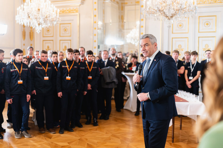 Mit einer besonderen Auszeichnung der Republik ehrten Bundeskanzler Karl Nehammer und Jugendstaatssekretärin Claudia Plakolm die Gewinnergruppen des 24. Bundesjugendfeuerwehr-Leistungswettbewerbs, bei dem in Lienz die schnellsten Feuerwehrjugendgruppen ermittelt wurden. Die Gewinnerinnen und Gewinner setzten sich dabei gegen rund 600 Teilnehmende und 57 Gruppen durch. Vor der feierlichen Verleihung im Bundeskanzleramt führten die jungen Feuerwehrmitglieder eine Kostprobe ihres Könnens vor.