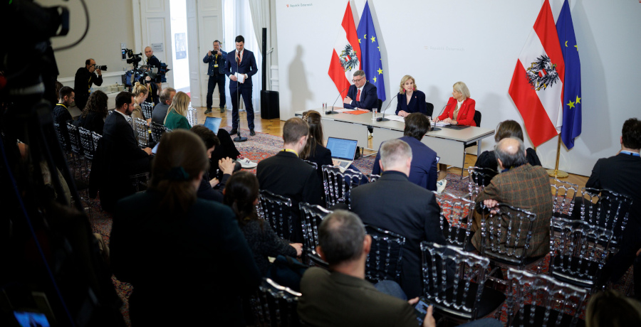 Am ersten Tag ihrer zweitägigen Regierungsklausur am 8. und 9. April hat sich die Bundesregierung auf gemeinsame außenpolitische Grundsätze geeinigt. In einer gemeinsamen Stellungnahme wird einleitend festgestellt, dass sich die sicherheitspolitische Situation Europas zuletzt grundlegend geändert hat: "Es herrscht seit über drei Jahren wieder Krieg auf unserem Kontinent, das Sicherheitsumfeld hat sich verschlechtert. Sicherheit ist keine Selbstverständlichkeit, sondern ein Gut, das geschützt, verteidigt und politisch gestaltet werden muss. Globale Krisen, wirtschaftliche Unsicherheiten, zunehmende geopolitische Spannungen sowie die Erosion der regelbasierten Ordnung führen uns die Fragilität unserer sicherheitspolitischen Architektur deutlich vor Augen." Zudem hebt die Regierung hervor, dass sich Österreich als Teil eines gemeinsamen Europas versteht, "dessen Sicherheit untrennbar mit unserer eigenen verbunden ist".