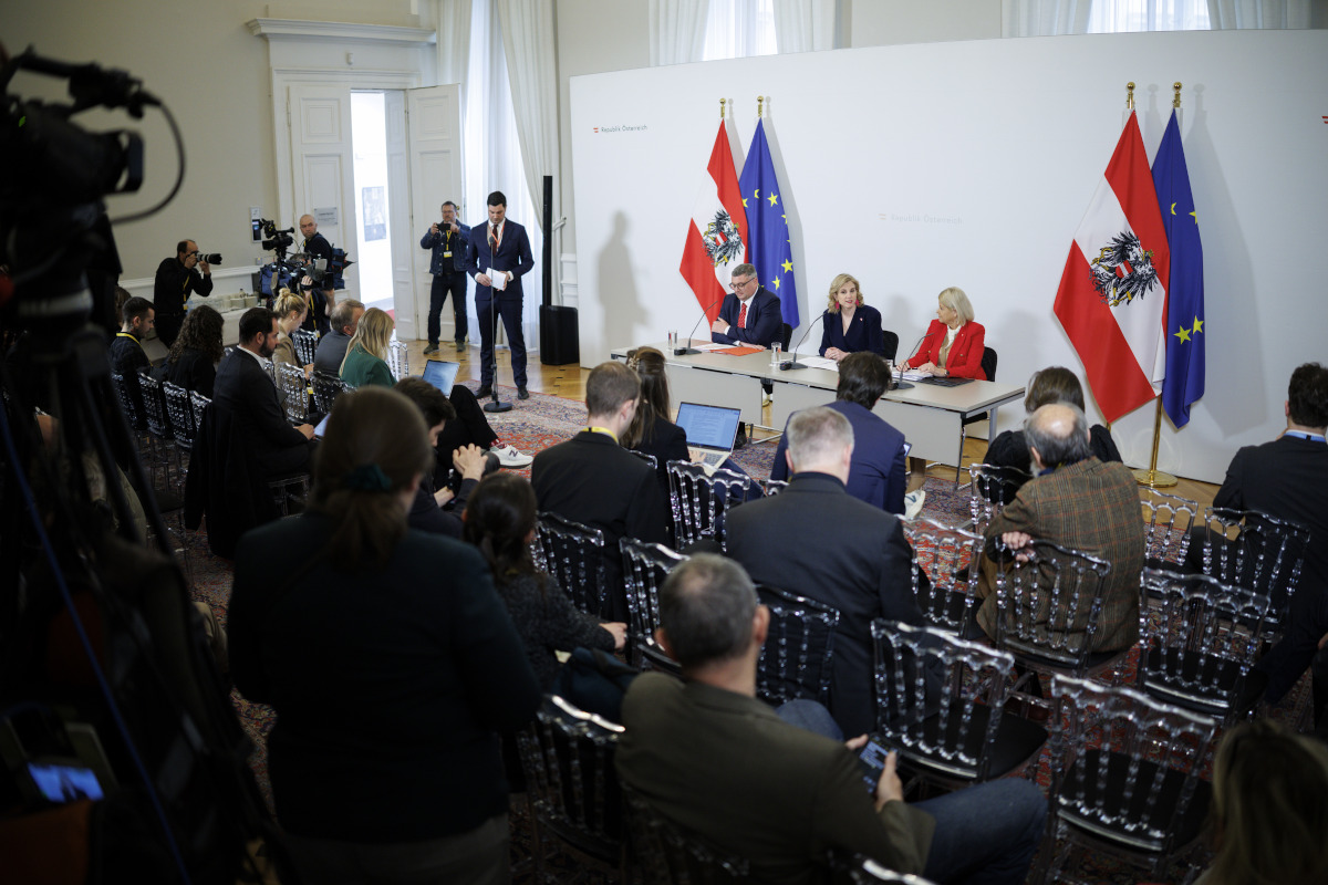 Bilder von diesem Pressebriefing sind über das Fotoservice des Bundeskanzleramts kostenfrei abrufbar.