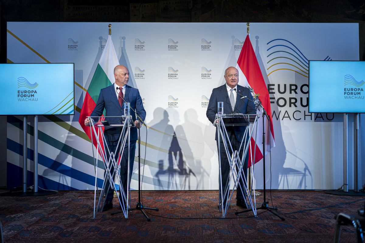 Bundeskanzler Christian Stocker empfing den Ministerpräsidenten der Republik Bulgarien, Rossen Jeliazkov, am 12. Juni in Wien. Gemeinsam stellten sich die beiden Regierungschefs heute, am 13. Juni, im Rahmen des Europa-Forums Wachau in Stift Göttweig den Medien. Der österreichische Regierungschef betonte eingangs, dass dies angesichts des Amoklaufs in Graz am Dienstag "extrem schwierige und nicht leicht zu bewältigende Tage" für Österreich seien. "In diesen Momenten ist es tröstend, so viel Solidarität und Unterstützung aus Europa und der ganzen Welt zu spüren", sagte Stocker und bedankte sich für die Anteilnahme seines bulgarischen Amtskollegen. Bereits am Vortag in Wien habe man einen "produktiven und vertrauensvollen Austausch" führen können.