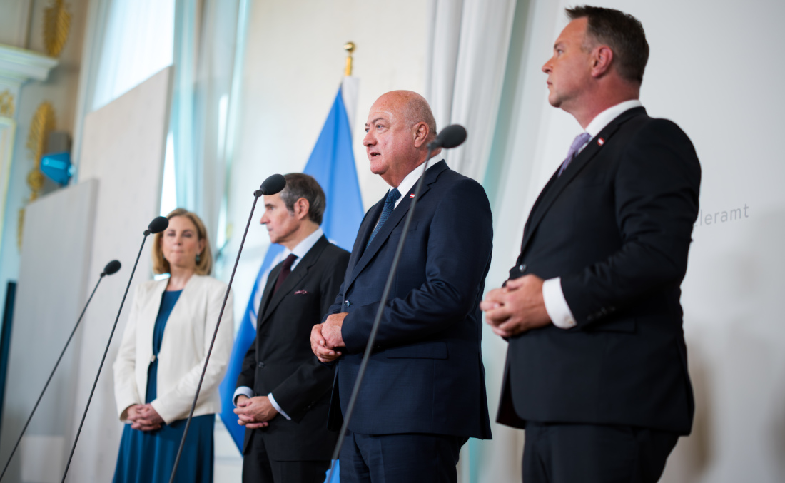 Bei den Doorsteps vor dem Bundes-Krisensicherheitskabinett erläuterte Bundeskanzler Christian Stocker gemeinsam mit Vizekanzler Andreas Babler und Außenministerin Beate Meinl-Reisinger die Position Österreichs zu den jüngsten geopolitischen Entwicklungen im Nahen Osten. IAEA-Generaldirektor Rafael Grossi gab dabei eine Einschätzung der Atomorganisation ab, die in Wien ansässig ist. Stocker kündigte auch an, dass im Anschluss der Sitzung des Nationalen Sicherheitsrats eine Lageeinschätzung mit allen Parlamentsparteien erfolgen werde.