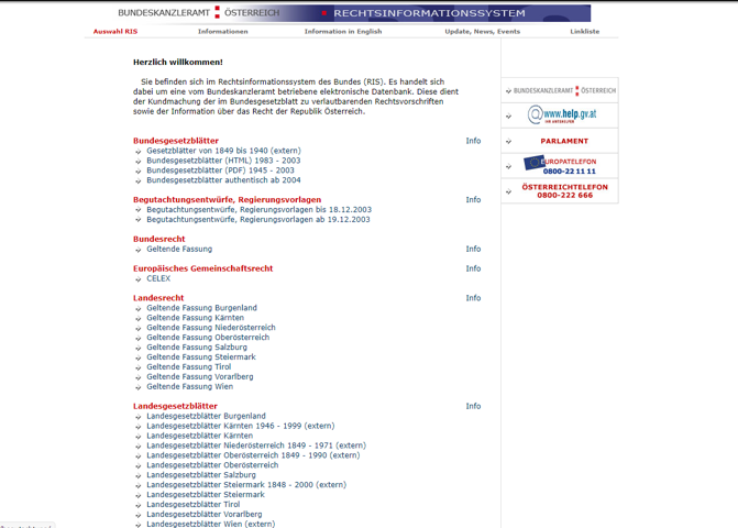 Das RIS wird seit Beginn regelmäßig um Funktionen zur Einbindung diverser Rechtsdatenbestände aus Bund, Ländern, Bezirken und Gemeinden sowie Judikatur, Kundmachungen, Erlässe und vieles mehr aus den Rechtserzeugungsprozessen erweitert. Es umfasst 2022 bereits rund 2 Millionen Dokumente und weist insgesamt über 5 Milliarden Dokumentzugriffe auf. Ein umfassender Relaunch ist für 2026 geplant.