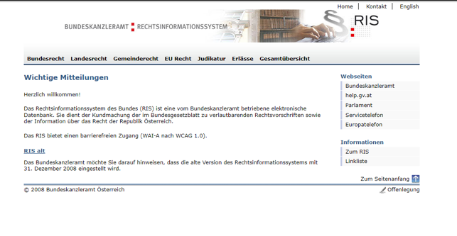 Das RIS ist eine im Internet frei zugängliche Datenbank des österreichischen Rechtswesens. Die Datenbank besteht seit 1986 und kann seit Juni 1997 von der Öffentlichkeit kostenlos genutzt werden.