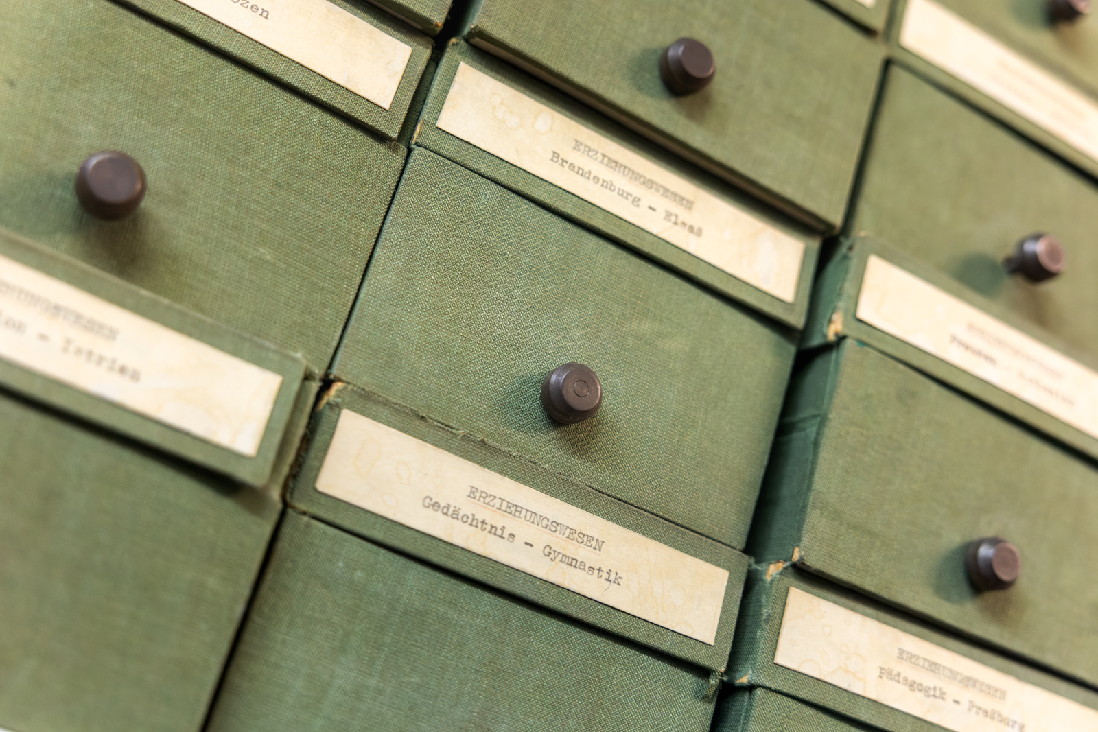 Mehr dazu im Abschnitt "Große Katalogrevision" auf Seite "Thema 4 Die Bibliothek in der Nachkriegszeit".