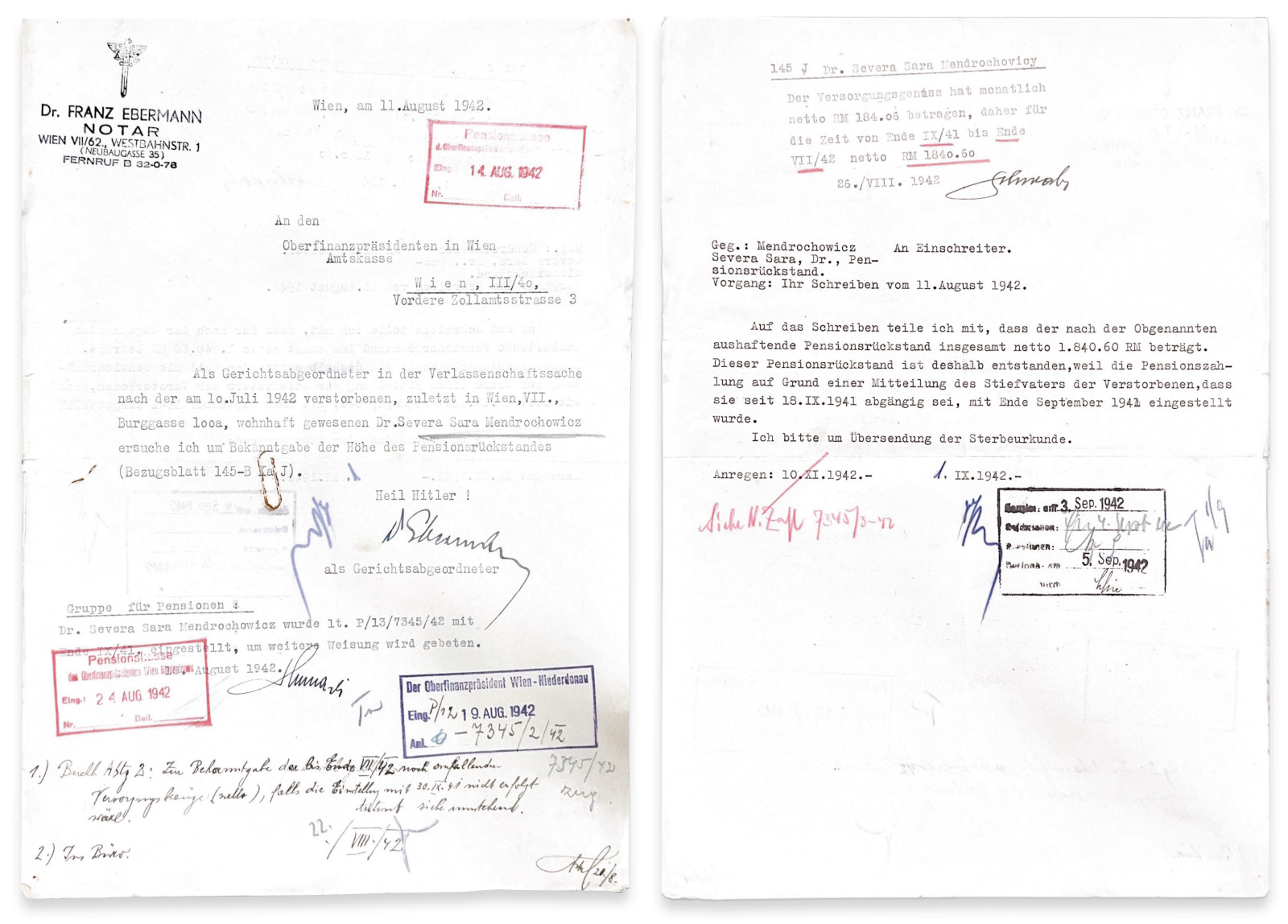 Severa Wjera Mendrochowicz was appointed Deputy Head of the Administrative Library in 1925, a position she held until her leave of absence in March 1938. On October 29, 1938, she was forced into retirement under § 3 of the Ordinance on the Reorganization of the Civil Service.