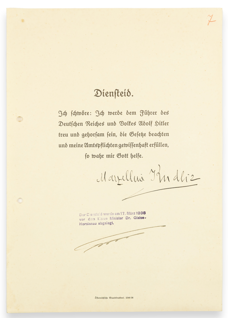 Throughout the 20th century, many civil servants in Austria experienced multiple political regime changes: from the monarchy to the First Republic, through the authoritarian Ständestaat, the annexation in 1938, and finally the founding of the Second Republic. Within the span of less than 3 decades, some were compelled to take up to 5 different oaths of allegiance.