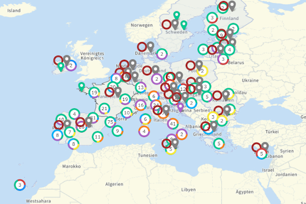 - Die Karte zeigt den Standort der jeweiligen Projekte in den Mitgliedstaaten und informiert über die jeweils aktuelle Umsetzungsphase.