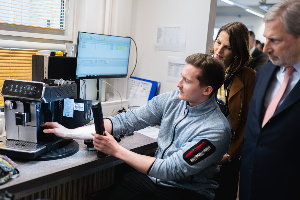 Der zweite Tag der Jahreskonferenz stand im Zeichen von 2 Projektbesuchen in der Steiermark. Gemeinsam mit Johannes Hahn, Kommissar für Haushalt und Verwaltung, besichtigten Europaministerin Karoline Edtstadler und Klimaschutzministerin Leonore Gewessler sowie Landeshauptmann Christopher Drexler 2 Projekte, in welche Mittel des EU-Aufbauplans fließen: die Zulaufstrecke der Koralmbahn in Feldkirchen bei Graz und den Reparaturbonus-Betrieb Hirschmann in Graz, welcher am Nachmittag gemeinsam mit der Grazer Vizebürgermeisterin Judith Schwentner besucht wurde.