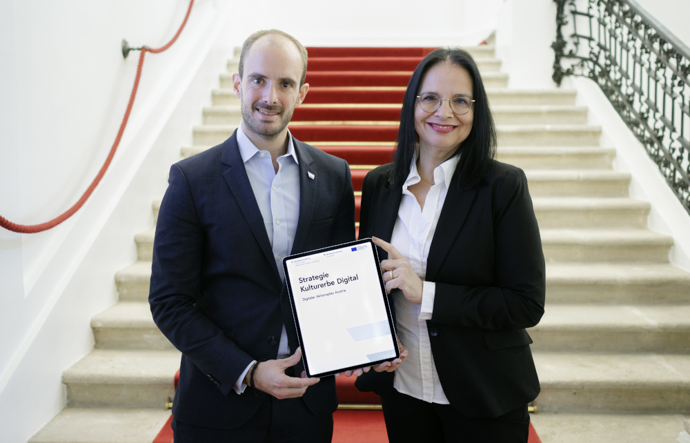 Andrea Mayer, Staatssekretärin für Kunst und Kultur, sowie Florian Tursky, Staatssekretär für Digitalisierung, haben am 18. April 2023 die "Strategie Kulturerbe digital" vorgestellt – eine Maßnahme im Rahmen des österreichischen EU-Aufbauplans und Teil des "Digitalen Aktionsplans Austria". Ziel der "Strategie Kulturerbe digital" der österreichischen Bundesregierung ist es, eine Standortbestimmung in Bezug auf die Nutzung digitaler Technologien im Bereich des Kulturerbes vorzunehmen, Potenziale zu diskutieren und Bewusstsein zu schaffen.