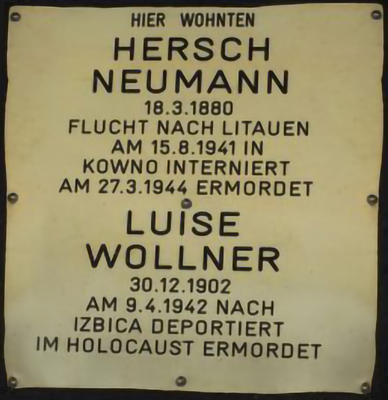 Ich habe immer schon etwas zur Erinnerung haben wollen. Der Stein im Boden in der Hörlgasse, den wir dort legen haben lassen, war für mich schon ein Bezugspunkt. Natürlich ist das ein Zeichen für mich, dass es noch einen Ort gibt, an dem der Name meines Großvaters dokumentiert ist. Ich habe gebeten, man möge meinen Großvater auf der Namensmauer mit Neumann Hersch anschreiben, weil dann ist er klar identifizierbar. Das ist auch geschehen. Er ist nun dort auf einer der Namensmauern und ich habe die Namensmauern besucht, ich habe seinen Namen gesehen und ein Foto gemacht. Meine Angehörigen, also meine Cousinen und deren Kinder, wissen jetzt, dass es einen Platz gibt, wo sie ihren Großvater oder Urgroßvater besuchen können. Er ist also nicht vergessen.