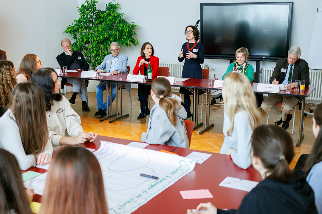 Die Schülerinnen diskutierten anschließend mit den Mitgliedern der Bioethikkommission ihre Erfahrungen während der Corona-Pandemie und das Thema Wissenschaftsskepsis und Vertrauen in die Wissenschaft.