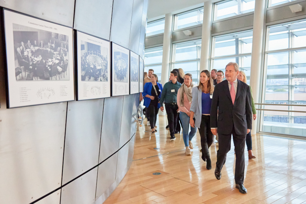 Die österreichischen Europa-Gemeinderätinnen und Europa-Gemeinderäte hatten Gelegenheit, sich in Brüssel mit hochrangigen politischen Vertreterinnen und Vertretern auszutauschen. So nahm sich Kommissar Johannes Hahn, zuständig für Haushalt und Verwaltung, im 13. Stock des Berlaymont-Gebäudes – wo die Präsidentin der Europäischen Kommission, Ursula von der Leyen, ihr Büro hat – ausführlich Zeit für ein Gespräch über die Herausforderungen, welche die EU gegenwärtig zu bewältigen hat. "Europa-Gemeinderätinnen und Europa-Gemeinderäte sind die Brücke zwischen Brüssel und den Bürgerinnen und Bürgern. Ich habe mich sehr gefreut, eine Gruppe von Ihnen heute in Brüssel zu begrüßen und mit Ihnen über Europa zu debattieren!"