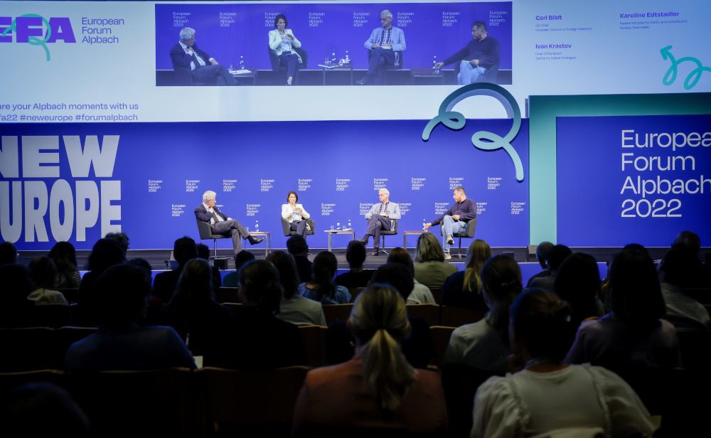 Eine geopolitisch-strategische Standortbestimmung bot die Panel-Diskussion "EU 2025 – How Will the War in Ukraine Change Europe?" am 1. September 2022, welche von Thomas Mayr-Harting (Vorsitzender des International Advisory Board, Europäisches Forum Alpbach) moderiert wurde. Ivan Krastev, Chair of the Board des Centre for Liberal Strategies (Sofia, Bulgarien) sowie des Instituts für die Wissenschaften vom Menschen (IWM) Wien, und Carl Bildt, Co-Chair des European Council on Foreign Relations (ECFR) und ehemaliger Ministerpräsident sowie Außenminister Schwedens, widmeten sich gemeinsam mit Europaministerin Karoline Edtstadler möglichen Szenarien und neuen Herausforderungen, welchen die EU aktuell und in den kommenden Jahren aufgrund des Kriegs in der Ukraine gegenüberstehen könnte. Einig waren sich die Diskutantinnen und Diskutanten darüber, dass der 24. Februar 2022 die Entwicklungen in ein "Davor" und "Danach" geteilt habe. Diese Zäsur habe Auswirkungen auf die Außen- und Sicherheitspolitik der EU, aber auch auf die internen Entscheidungsprozesse.