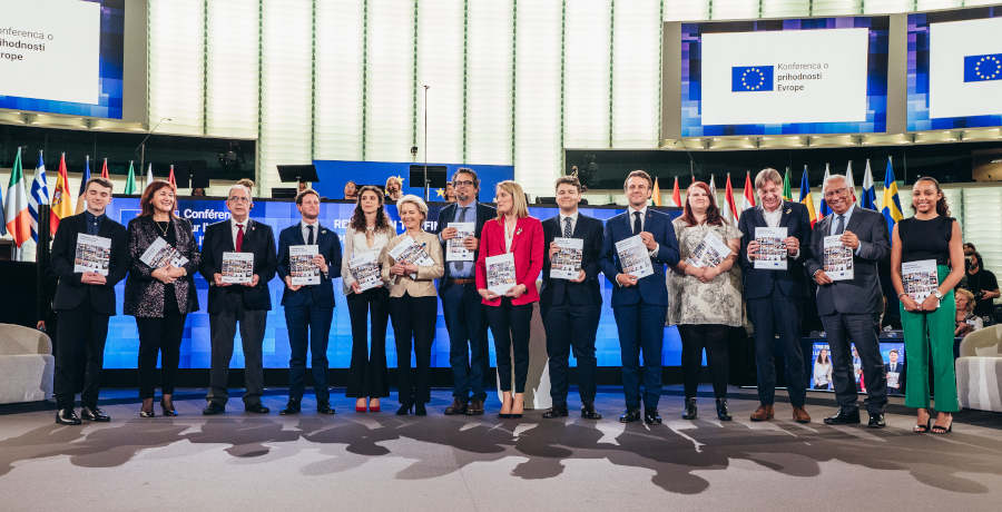 Nach 12 Monaten und zahlreichen Veranstaltungen, Debatten und Diskussionen ging die "Konferenz zur Zukunft Europas" am Europatag, dem 9. Mai 2022, in Straßburg, Frankreich, offiziell zu Ende. Im Rahmen einer feierlichen Abschlusszeremonie wurde der Präsidentin der Kommission, Ursula von der Leyen, der Präsidentin des Europäischen Parlaments, Roberta Metsola, sowie dem französischen Staatspräsidenten Emmanuel Macron (als Vertreter des aktuellen französischen EU-Ratsvorsitzes) der Abschlussbericht zur Konferenz übergeben.