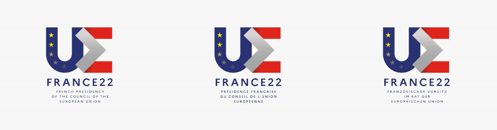 Das Logo des französischen EU-Ratsvorsitzes soll ein dem Fortschritt zugewandtes Europa symbolisieren und basiert auf den Initialen der Europäischen Union, unterstrichen in Form von Buchstaben ("E" von Europa in Form eines Pfeils, der in die Zukunft weisen soll), Farben und Symbolen (Zusammenspiel der 3 Farben der französischen Flagge sowie der Sterne der Europäischen Union). Diesen aktuellen "europäischen Moment" möchte die französische EU-Ratspräsidentschaft auch durch ihr Motto zum Ausdruck bringen: "Relance, puissance, appartenance" steht demzufolge für