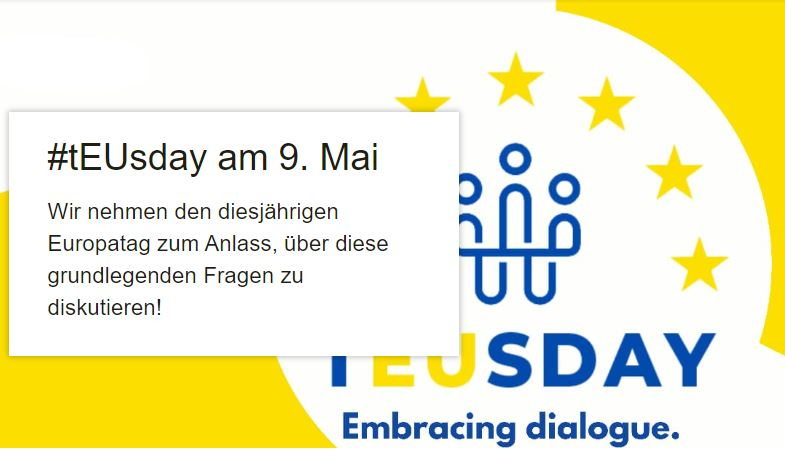 Im Rahmen des #tEUsdays soll ein Dialog über unterschiedliche Ansichten zu komplexen Fragen ermöglicht werden. Der #tEUsday findet wie ein Stammtisch jeweils einmal pro Monat am Dienstag statt.