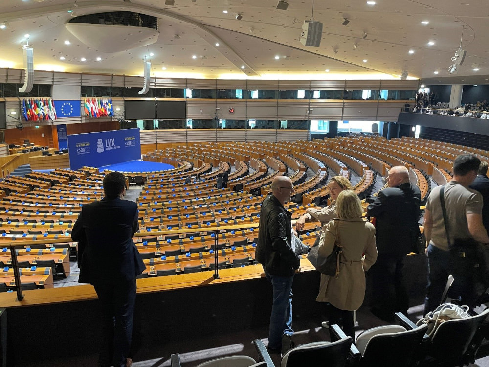 Eindrucksvoll präsentierte sich den Europa-Gemeinderätinnen und Europa-Gemeinderäten am Mittwoch das Paul-Henri-Spaak-Gebäude, der Sitz des Europäischen Parlaments in Brüssel. Der letzte Tag der Reise stand ganz im Zeichen des Dialogs, und den passenden Rahmen dafür bot das neu renovierte Besucherinnen- und Besucherzentrum des Parlaments. Im Jahr 2023 konnten dort 386 Besucherinnen- beziehungsweise Besuchergruppen aus Österreich begrüßt werden.